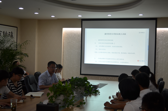 良好的風(fēng)險(xiǎn)識(shí)別與處置能力,可以為公司的長久穩(wěn)定發(fā)展保駕護(hù)航。為了增強(qiáng)公司員工識(shí)別承租人風(fēng)險(xiǎn)的意識(shí),提高風(fēng)險(xiǎn)處置的能力,我公司特邀法律顧問、海翔律師事務(wù)所資深律師徐亞明,于2015年7月2日晚對(duì)我公司全體員工進(jìn)行融資租賃相關(guān)法律風(fēng)險(xiǎn)的... |
